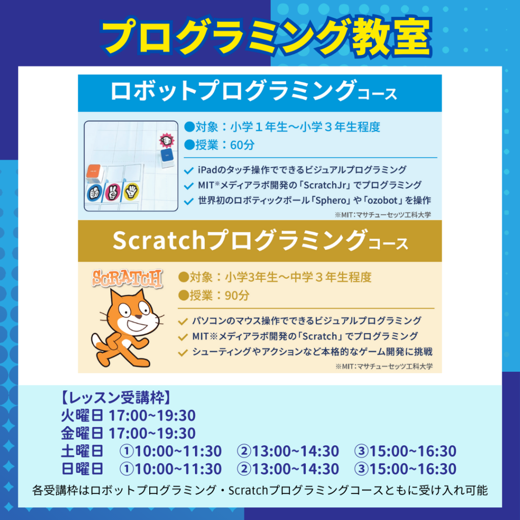 【通話料無料】受付時間 9:00〜18:00※案内にプログラミング教室係とお伝えください