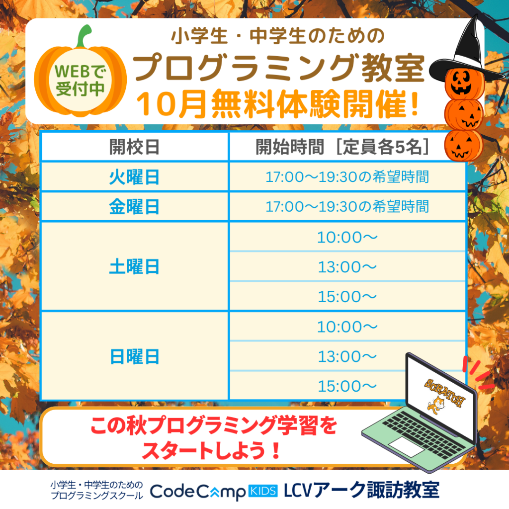 コードキャンプ LCVアーク諏訪教室お問い合わせ/教室直通スマートフォン
