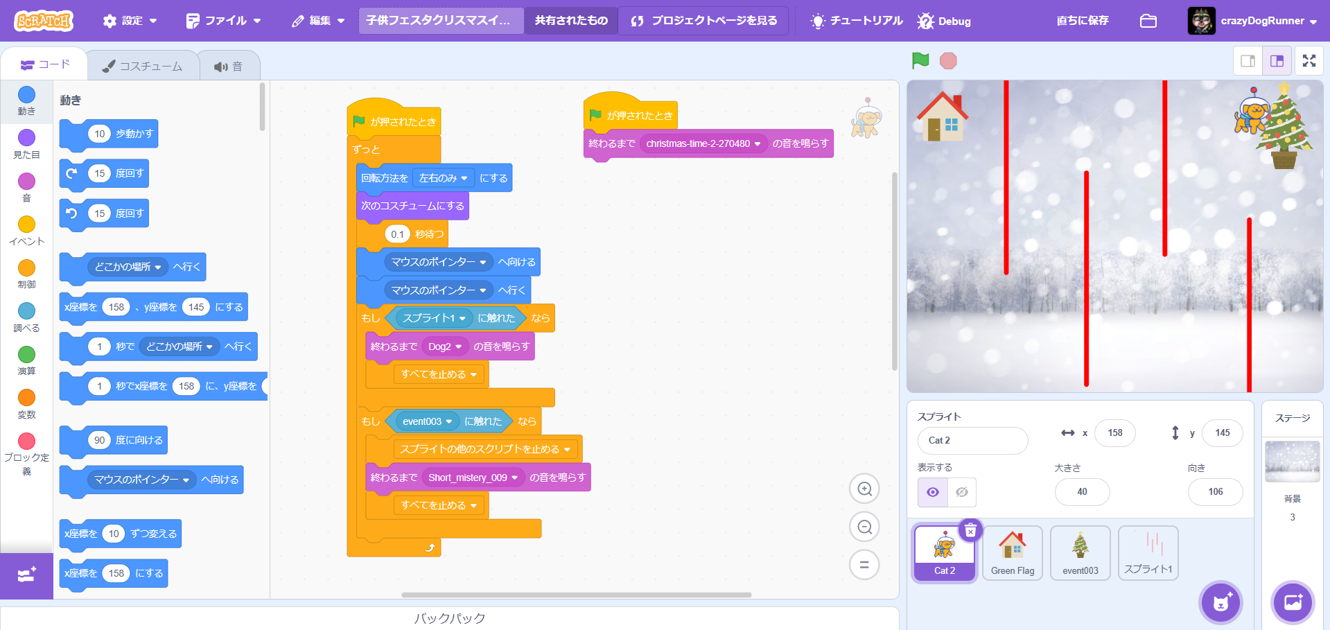 参加してくれたのが保育園生のお子さまが多かったため、パソコンの操作に慣れていない子も多かったのですが、上手にプレイヤーであるワンちゃんを誘導してクリスマスツリーまでたどり着けました!