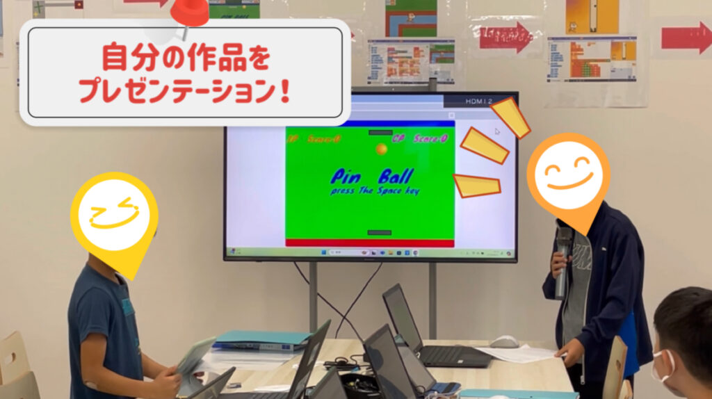 お父さんお母さんにも見ていただきながら、生徒さんが自分で企画した作品をプレゼンテーションします!