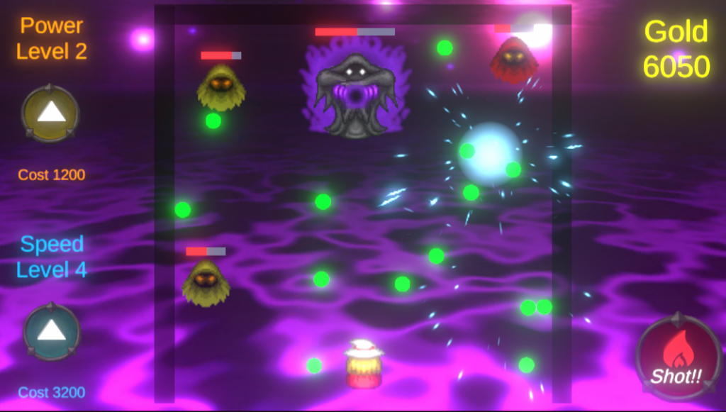 敵からゲットしたゴールドを使い、パワーとスピードを上げていこう。