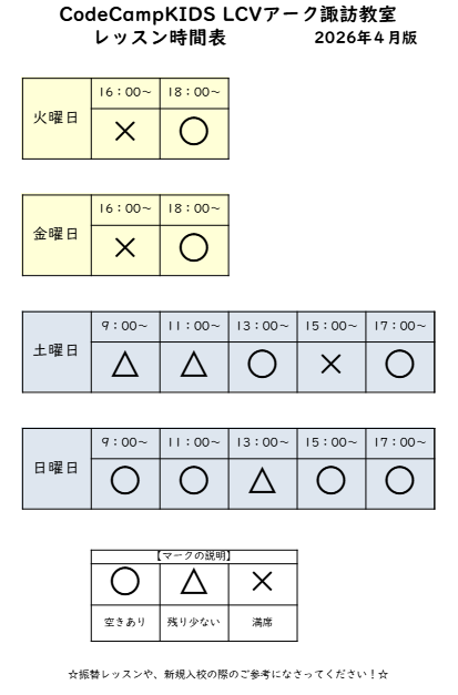 当スクール『CodeCampKIDS LCVアーク諏訪教室』では、主に小中学生へ向けてレッスンを行っています。